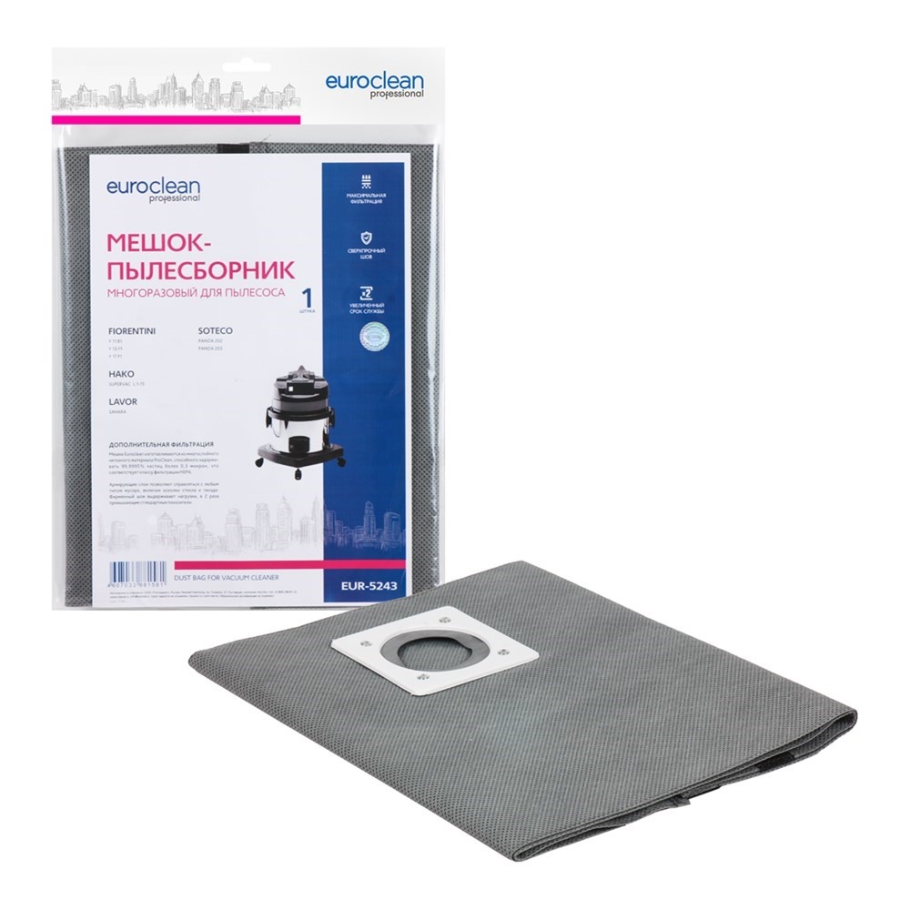 EUR-5243 Мешок-пылесборник Euroclean многоразовый с текстильной застежкой для пылесоса - ИП Андреев М.А