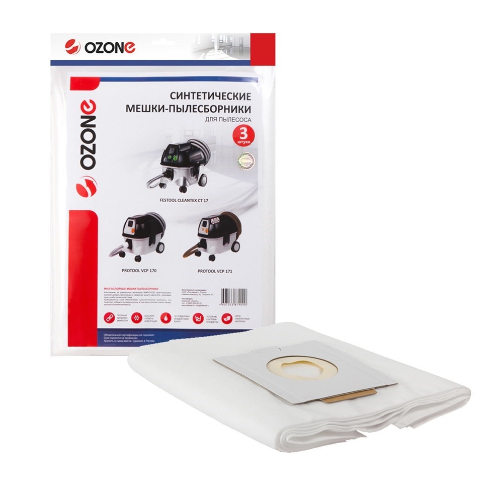 MXT-250/3 Мешки-пылесборники Ozone синтетические для пылесоса, 3 шт - ИП Андреев М.А